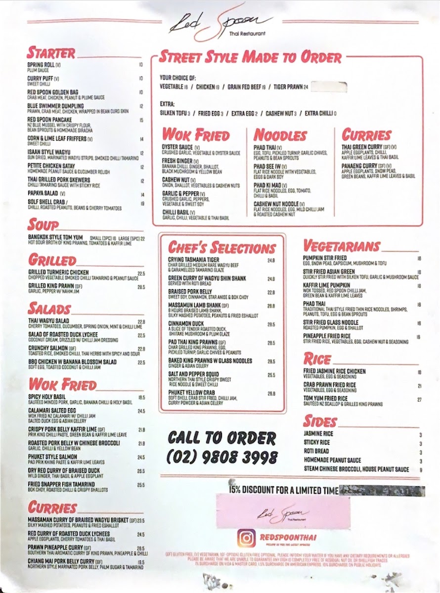Signature cocktails like the Pattaya Fizz and Watermelon Smash elevate your visit, making it more than just a meal. The restaurant has received rave reviews for its welcoming service and the stunning presentation of dishes like the Red Duck Curry with Lychees and Pad Thai, which consistently impress patrons. Despite slight variations in portion sizes and some mixed reviews regarding spice levels, Red Spoon Top Ryde remains a favorite for both casual diners and special occasions.